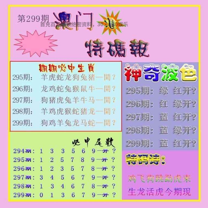 300期:独解傳眞 解:今期生肖三三开,六七扬帆三四出。蓝蓝绿绿中特期,曾说同人不同命。西天路上寻特肖,琐窗风雨三二情。六畜兴旺家中肖,强盗从来图谋利。 送:虎猴猪狗龙马鸡羊 抓住一句解必中特 |